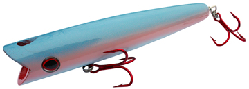 Rhode Island Poppers makes more than 20 different plugs, from small inshore sand-eel imitations to offshore tuna poppers. The most popular plug, according to Armand, is the Junior Pikie. This lure swims with a “bit of a wiggle and a bit of a wobble” and casts farther than just about any other metal-lip plug available.
