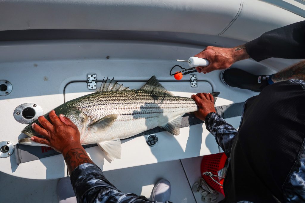Back at the marina, anglers traded stories of the day’s hardships. To summarize just how challenging the fishing was, the high hook among 40 boats over 6 hours was angler Steve Palmo, who caught and released 6 striped bass aboard LI Fishing Charters with Captain Andy LoCascio.