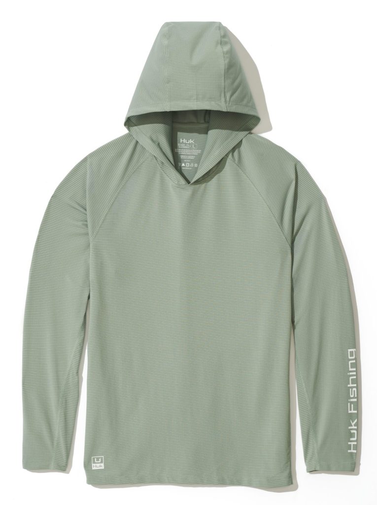 This lightweight and breathable hooded shirt is packed with features that provide maximum sun coverage. The hood includes an integrated face mask with laser-perforated holes which minimize fogging of sunglasses, while integrated thumb holes protect the back of your hands from extended UV exposure. Plus, HeiQ Stain Away, Smart Temp, and Pure Odor Control shed fishy liquids like blood and slime while regulating body temperature and shedding unpleasant scents.