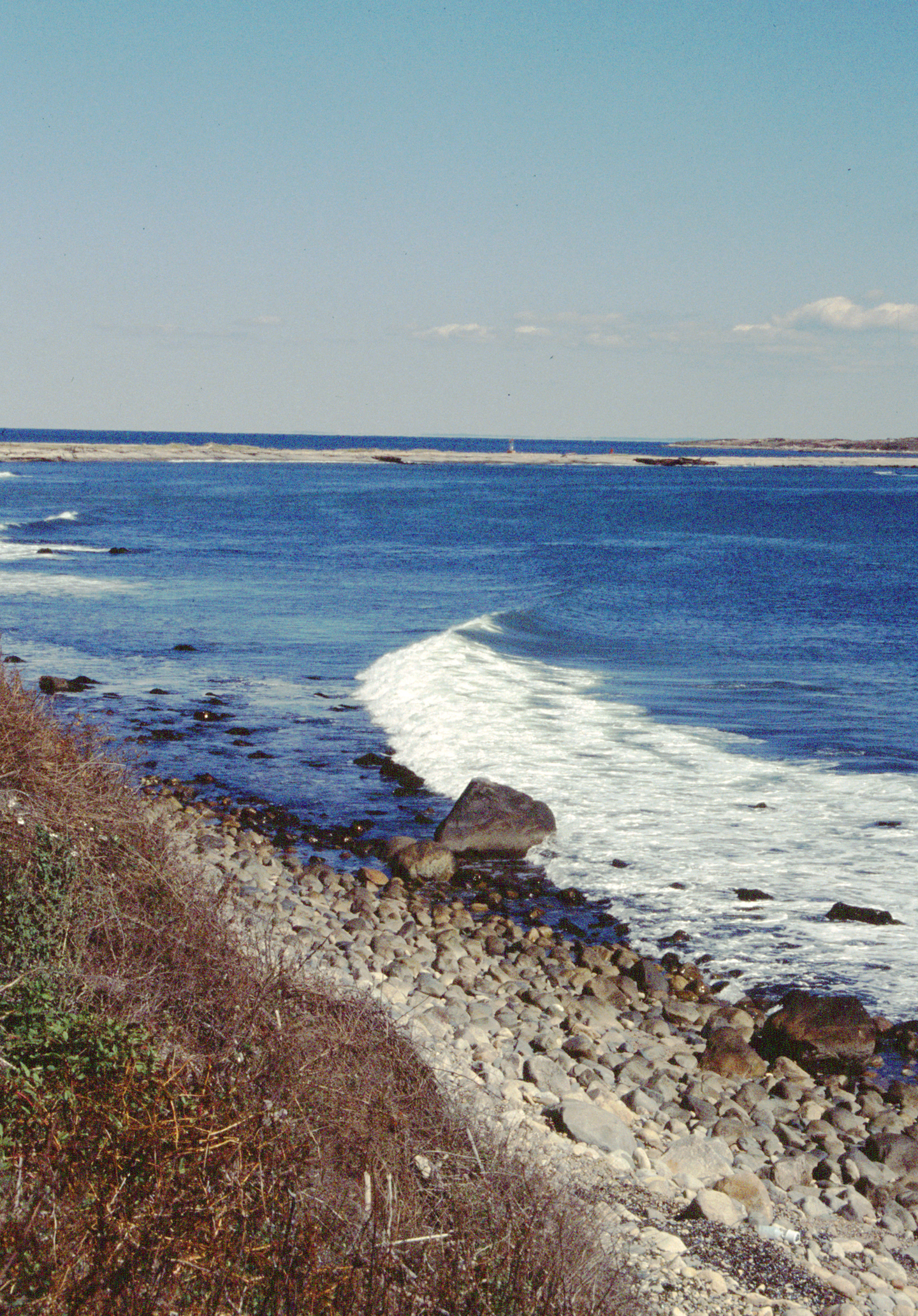 The sun has cut through the morning haze. Time to make some coffee and sit on the bench at the edge of the bluff. There it is again, the feeling. Waves sweep by below, bending into the curve of the cobblestone beach and toward the wrecked barge farther up toward Canapitsit Channel. That rocky beach is a prime fishing area if the weed isn’t too thick, especially after dark with eels or big surface-swimming plugs. Far away across Vineyard Sound, Gay Head Light blinks. In spite of the coffee, it’s easy to let the feeling carry you away as you close your eyes, turning off consciousness to everything but the rhythm of the waves and the smell of salt air and wildflowers.