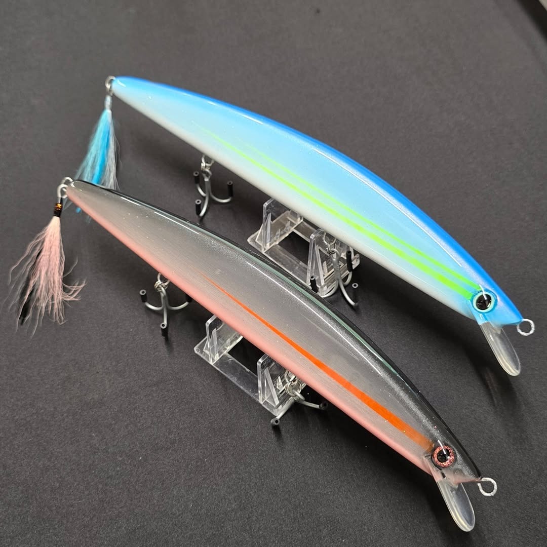 Last spring, he made a couple XXL minnow for Vinny Cebara, incuding a 14-inch and a 16-inch, but does not offer these for sale.