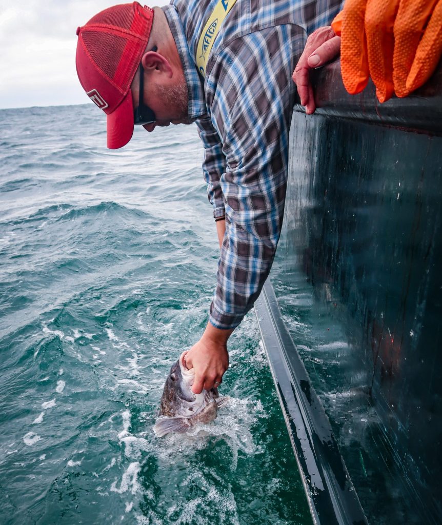 My favorite moment in tautog fishing is the half-second after the hookset. Just about every other fish, upon feeling the hook, reacts immediately and violently, but not the tog. The tautog, also known as blackfish, swims up, slowly processing the situation, before turning and swimming back to its structure with the power of a fish many times its actual size. At the other end of the line, the angler is processing as well, wondering if the hook found its mark, or if the fish is keeper sized.