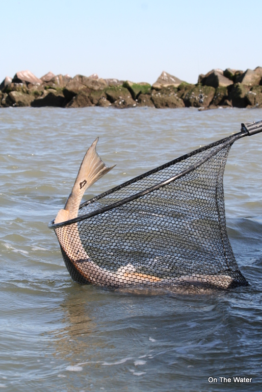 We motored down and saw Mark Davis tight to a big fish on a boat with one of the Hackberry Rod and Gun Club owners, Kurt Stansel, and photographer Gary Tramontina. Several other boats were anchored up in the area, and some of them were hooked up as well. The reds were running an underwater rock line parallel to the jetty, and you could almost predict when you would get hit based on when the other boats were hooking up. When I saw Kurt dip the net under a 20-pound-plus red drum for Mark, I could hardly get my line in the water fast enough.