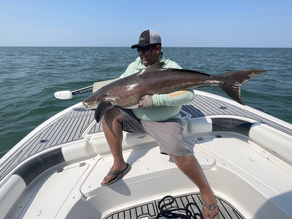 Some of the other species that most anglers are after in the southern portion of the Chesapeake Bay are cobia and redfish (red drum). Cobia are one of the hardest-fighting inshore fish. They make their way into the Bay in early June in Virginia waters and slowly work their way north. By July and August, they can be found anywhere from the Chesapeake Bay Bridge Tunnel to the southern portion of Maryland waters around Point Lookout.